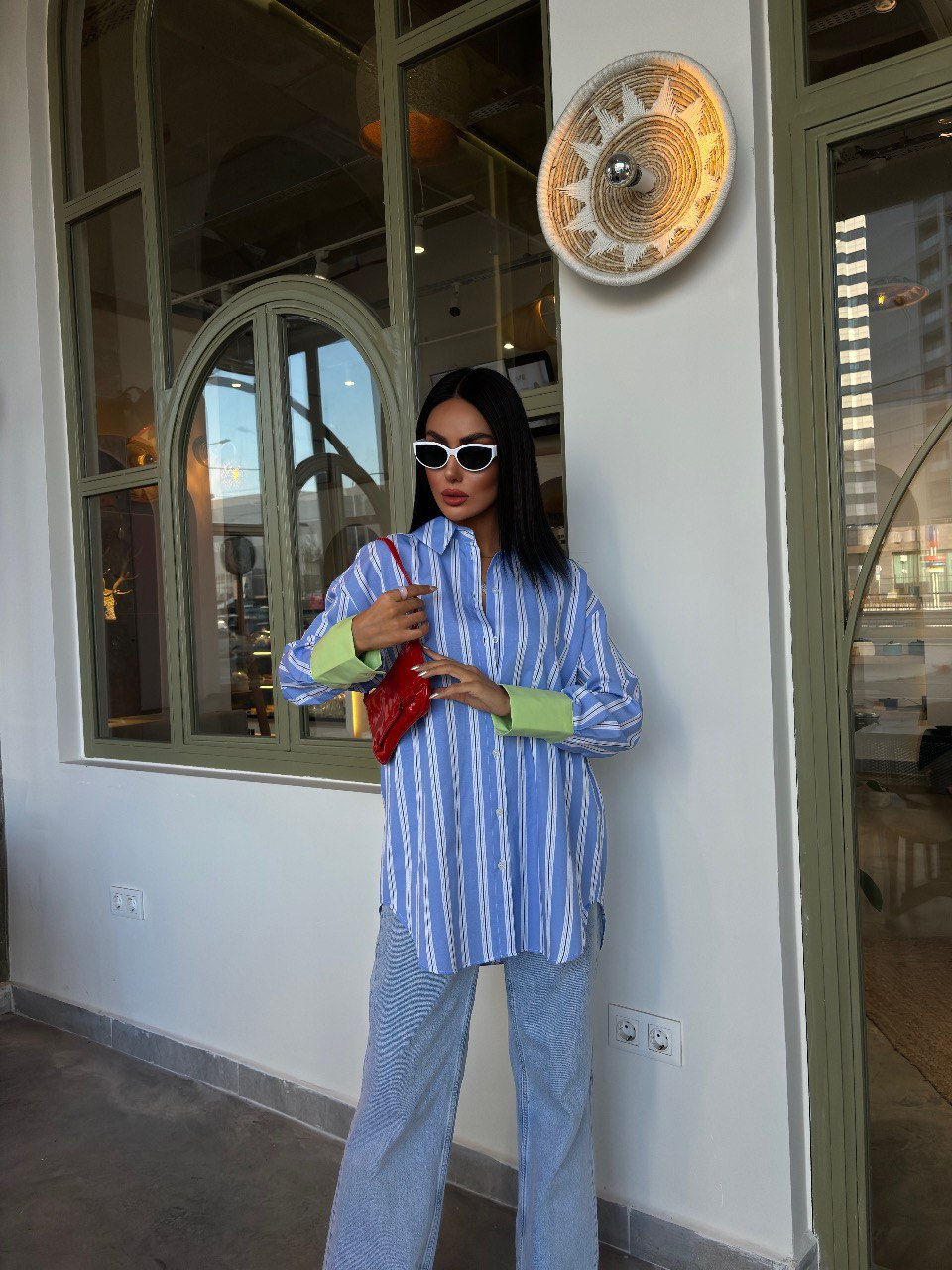 Kolu Manşet Detay Çizgili Oversize Gömlek